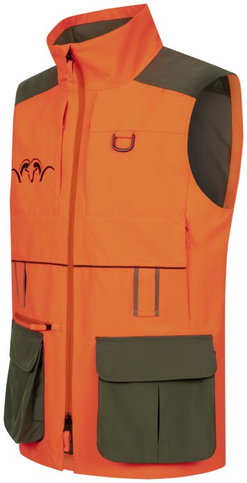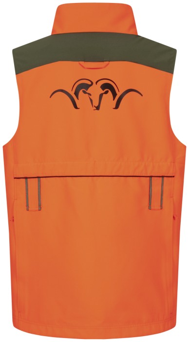 Västen är designad med flera genomtänkta detaljer som underlättar för både jägare och hundförare. Två radiofickor på bröstet med antennöglor och reflekterande Blaser Argali-tryck ger enkel åtkomst och ökad synbarhet. De färgkontrasterade framfickorna erbjuder gott om plats för jaktutrustning, där den högra fickan är försedd med praktiska öglor och den vänstra har en extra innerficka i mesh.