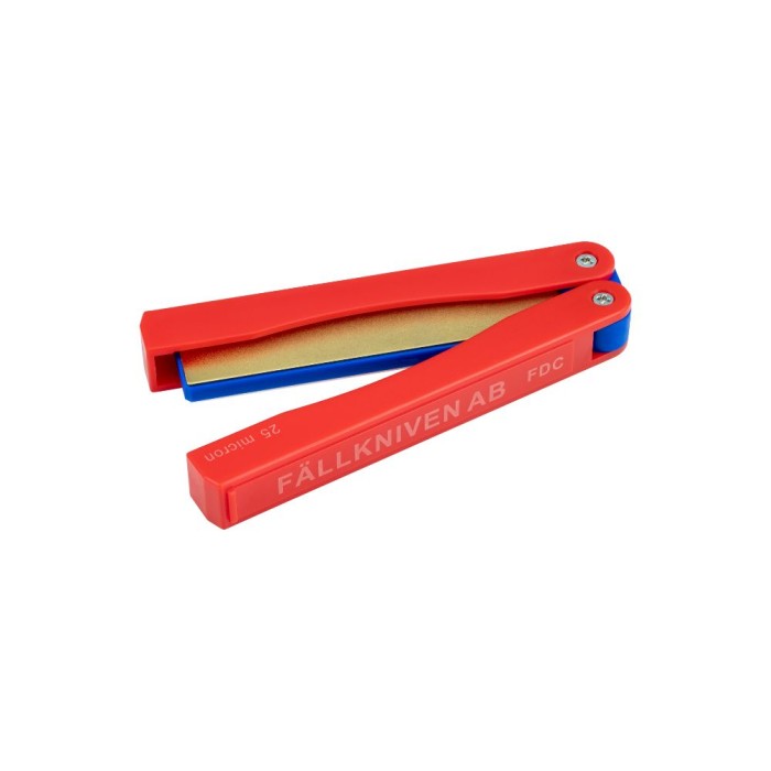 Fällkniven FDC är ett kompakt, fällbart bryne med två slipytor: ett grovt gult diamantbryne (25 micron) och ett superfinpolerande vitt kerambryne (9 micron). Det fällbara formatet gör det både säkert att använda och lätt att bära med sig.