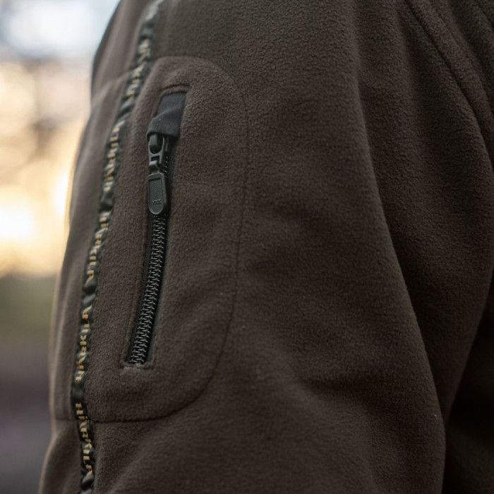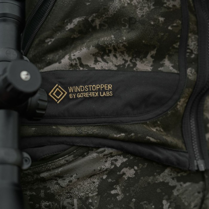 Jackan är tillverkad i mjuk, stretchig fleece och utrustad med ett GORE-TEX WINDSTOPPER®-membran från GORE-TEX LABS, vilket ger fullt vindskydd, god andningsförmåga och skydd mot lätt regn, utan att kompromissa med rörelsefriheten. Den borstade ytan gör jackan nästintill ljudlös, vilket är en fördel vid smygjakt eller när viltet är nära.