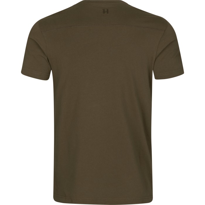 Den har en klassisk rund halsringning, en kontrastfärgad logotyp framtill och diskreta detaljer som kontrastband i nacken. Den moderna passformen gör att t-shirten sitter snyggt, utan att kännas stram. Ett utmärkt vardagsplagg med rötterna i jakt och friluft.