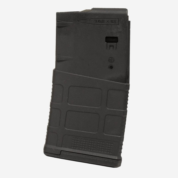 Magpul PMAG 20 LR/SR Gen M3 är ett lätt, slitstarkt och mycket pålitligt 20-skottsmagasin för vapen i kaliber 7.62x51 NATO / .308 Winchester. Magasinet har en låg profil och är konstruerat utan distanser eller överflödig volym, vilket gör det perfekt för jakt, precisionsskytte eller vid behov av begränsad kapacitet.