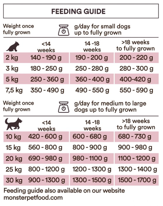 Utfodringstabellen fungerar som en vägledning och bör anpassas efter din valps ålder, tillväxt och individuella behov. Håll regelbunden koll på valpens vikt och justera mängden foder vid behov.