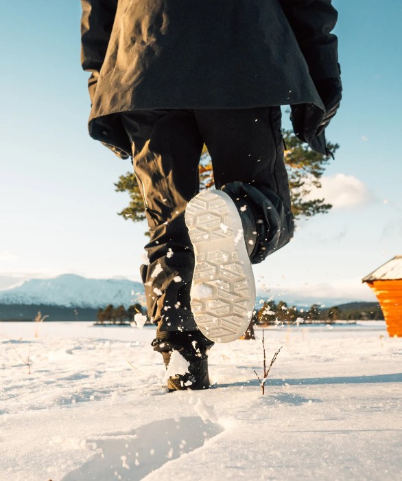 Yttersulan har ett mönster som förhindrar att smuts och snö fastnar och ger bra grepp på hala underlag. Konstruktionen använder variabel väggtjocklek för att kombinera låg vikt med extra skydd där det behövs, och den dubbla PU-densiteten i sulan ger både stabilitet och stötdämpning. Passformen är generös och utformad för att minimera tryck över skenbenet, vilket gör stöveln bekväm under längre användning.