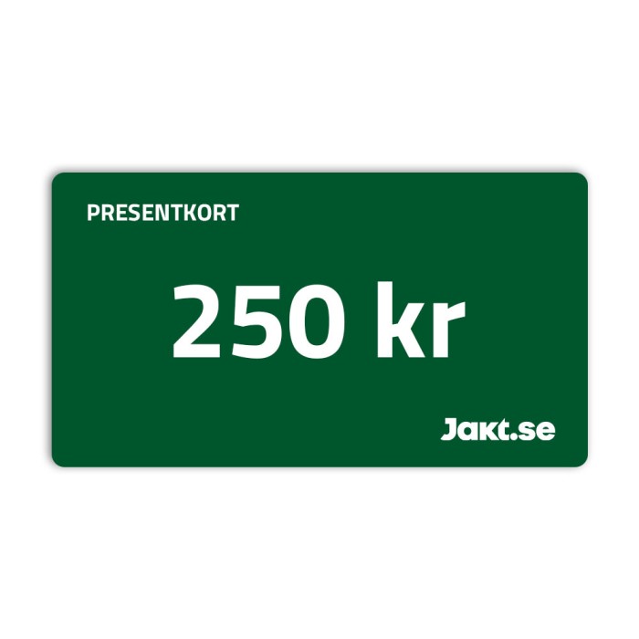 Ett presentkort från Jakt.se är alltid välkommet. Köp presentkort via vår hemsida, vi e-postar sedan ett presentkort (som .pdf-fil som ni kan skriva ut om ni vill) till er med en unik kod som ni kan använda som betalning via hemsidan.