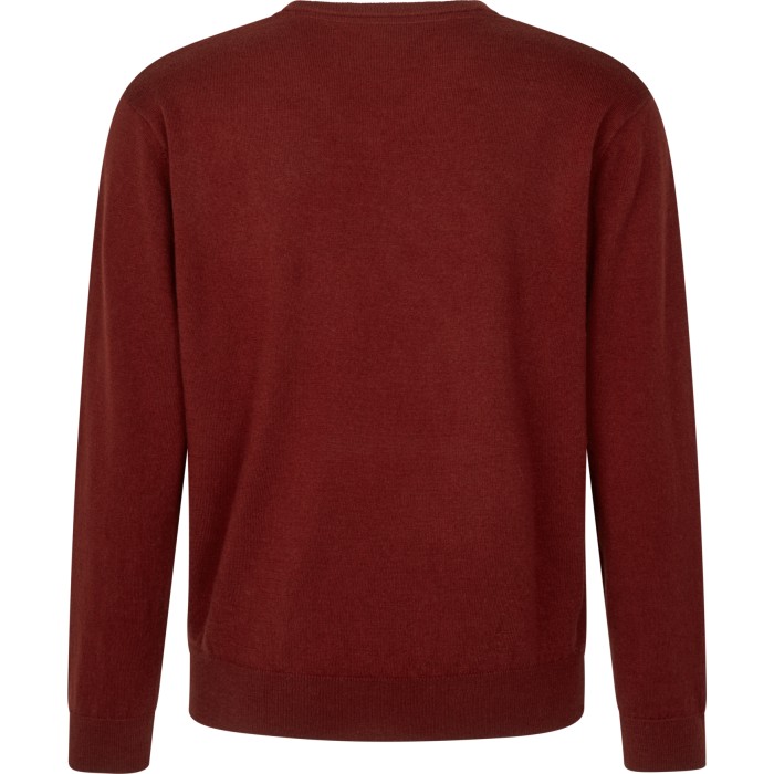 Pine V-neck från Seeland är en klassisk herrtröja i 100 % merinoull som kombinerar stil med funktion. Merinoullen ger naturlig värmereglering och effektiv fukttransport, vilket gör tröjan behaglig året om. Den vinröda Merlot-nyansen är inspirerad av rödvinsdruvan med samma namn, en djup, varm och sofistikerad färg som ger ett elegant uttryck och passar utmärkt till både jakt och vardag. Tröjan har V-ringning, ett diskret morkullebroderi på bröstet och är lika snygg över skjortan som under jackan.